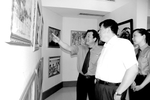 河南省人民檢察院檢察長蔡寧(中)在市人民檢察院檢察長李春長(左)陪同下視察指導(dǎo)周口檢察文化建設(shè)