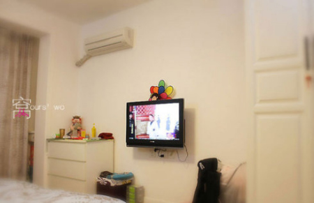 由于小的緣故,只能把客廳擺放的物件,擺放到臥室里。精致的小型液晶電視,白色的漆墻,簡(jiǎn)單而不簡(jiǎn)陋。