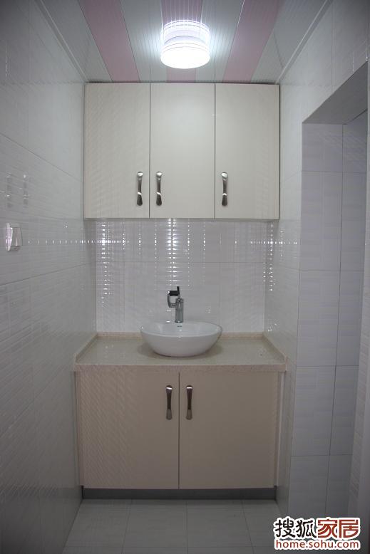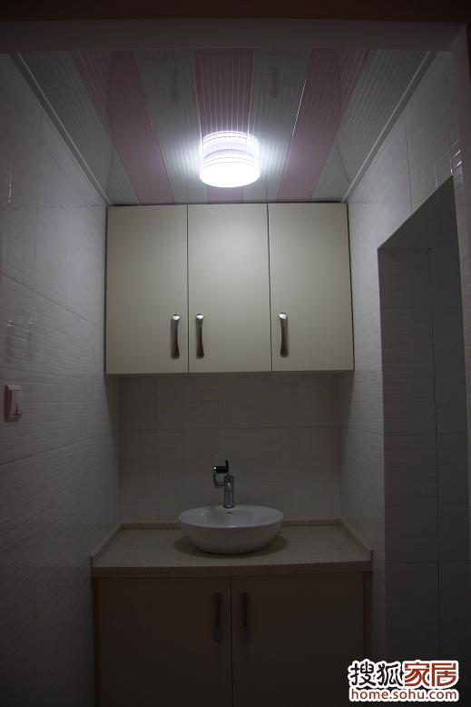 衛(wèi)生間干區(qū),底柜和吊柜貌似有色差,好像是燈光的問(wèn)題。這里我感覺(jué)有點(diǎn)蒼白,今后還需要裝飾一下。