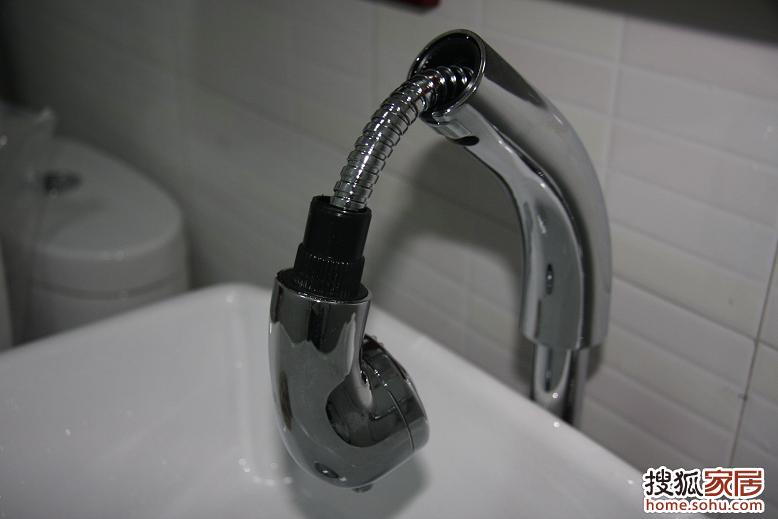 水龍頭特寫(xiě)。是一款抽拉式的水龍頭,方便今后洗頭發(fā)。