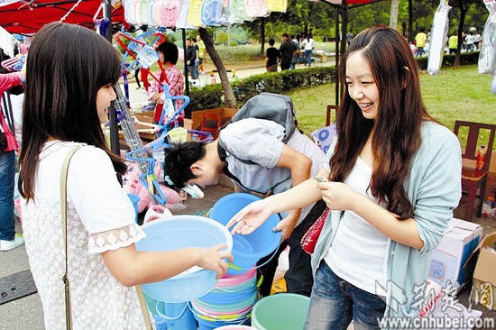 圖為:湖北經(jīng)濟學院學生開學“練攤”