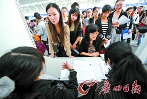 今年的招聘會(huì)不僅立足本地,還走出廣州赴外省組團(tuán)招聘。10月下旬至11月上旬,廣州市將組織130余家大型企事業(yè)用人單位,前往長(zhǎng)沙、武漢、成都、西安、北京、長(zhǎng)春等城市大規(guī)模招聘2012屆優(yōu)秀畢業(yè)生,提供4303個(gè)優(yōu)質(zhì)崗位。
