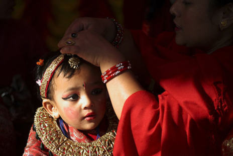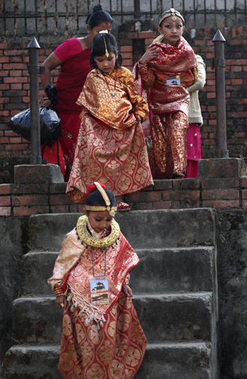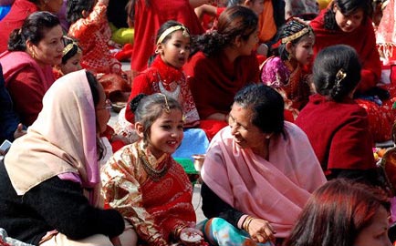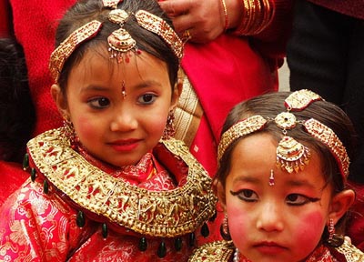 尼瓦爾族女孩一生“結”三次婚,第一次嫁給木蘋果(孟加拉蘋果),稱之為果實婚;第二次嫁給“太陽”;第三次才是與一個男人結為夫婦。