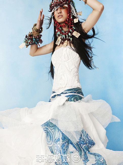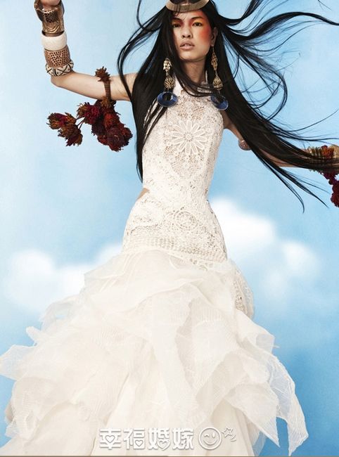 ??? Yolan Cris的西藏風情,中國元素蔚然呈現(xiàn),除去滿目琳瑯的夸張飾品,細看這組婚紗設計,繁復蕾絲的精巧設計光彩奪目,此般復古風情是不是能夠打動你的心呢