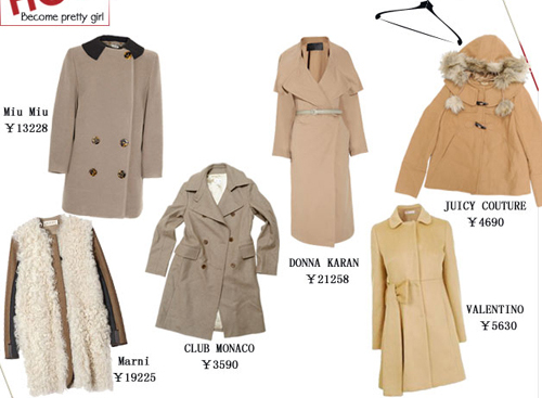 Miu Miu、Marni、CLUB MONACO、DONNA KARAN、JUICY COUTURE、VALENTINO等品牌也紛紛推出了駝色大衣,各種款式看的我們眼花繚亂。今年最流行的駝色大衣,這個(gè)冬季你要是沒(méi)有一件可就落伍了哦