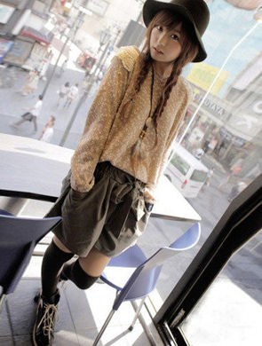 粉嫩的毛衣讓自己顯的更加卡哇伊,假兩件的裙裝打底褲拉長(zhǎng)腿部曲線,豹紋平底鞋透著小女人,帽子的材質(zhì)和毛衣一樣,看上去就暖暖的!