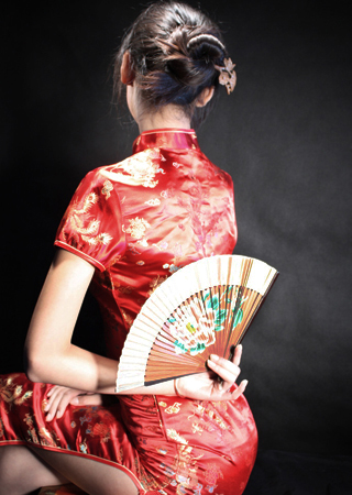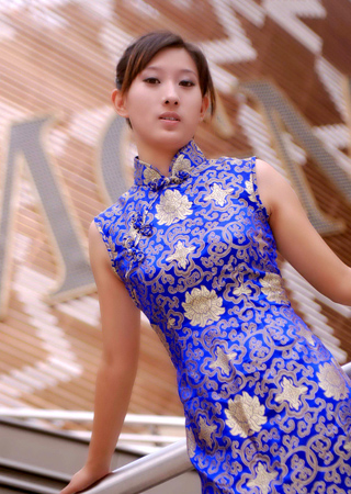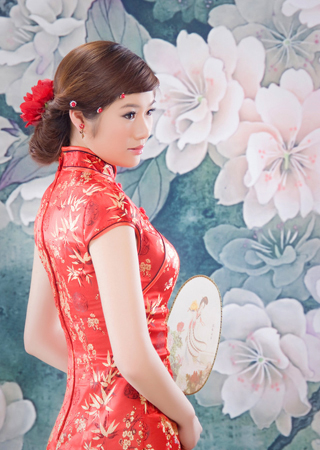 盡量不穿黑顏色的鞋子,如果有條件應(yīng)該穿真絲繡花或絲絨緞面鞋,其次可以穿紅皮鞋,但亮光皮鞋應(yīng)放在最后考慮。旗袍的長(zhǎng)度最好垂至腳面