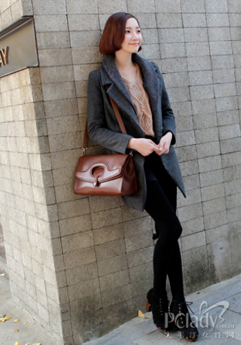 ????冬天的短褲在材質(zhì)上必定是以毛線、毛呢或者牛仔主打了!肉粉色麻花編織復(fù)古毛衣內(nèi)扎在黑色短褲里面,略微的V字領(lǐng)小露鎖骨性感無疑,黑色褲襪是必備色,不能要風(fēng)度不要溫度嘛!粗跟鞋橋面和包包呼應(yīng),帥氣雙層領(lǐng)中長款西裝,什么場合都可以Hold住了!