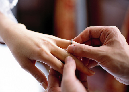 “Yes, I Do”——穿越永恒歲月,同樣的聲音,響徹在不同的地方。早在距今4800年前,古埃及人就將交換戒指作為愛(ài)的象征。在歐洲中世紀(jì)的婚禮上,篤信神圣愛(ài)情的新人們鄭重宣誓,同時(shí)彼此交換并為對(duì)方佩戴象征著聯(lián)結(jié)兩個(gè)人心臟的結(jié)婚戒指,從此結(jié)為一體,不可分割。這種合二為一的經(jīng)典婚戒,至今仍是新人們結(jié)婚的首選。