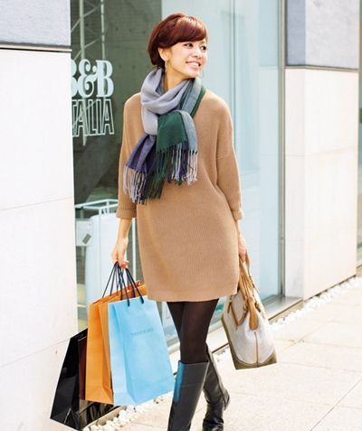 卡其色長款針織衫在還不冷的天氣里是可以單穿的。搭配褲襪和靴子簡約有范,為了避免單調(diào),可以配上毛衣鏈,也可以用圍巾點綴,都很好。