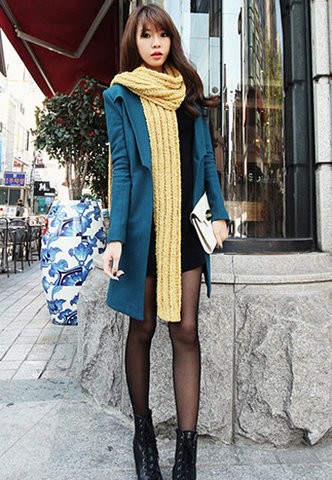 一條亮色的圍巾把整體瞬間變亮了。輕輕繞在肩膀后邊,看似隨意。垂下來的圍巾也當(dāng)原本單一的搭配看起來更加豐富