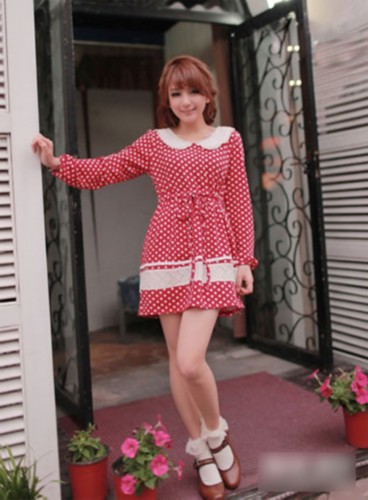 圓點(diǎn)抽繩公主娃娃領(lǐng)連衣裙