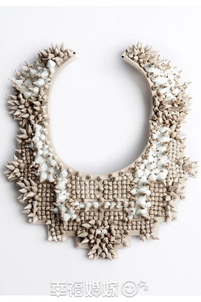 ??? 至今依然生活在安特衛(wèi)普的歐洲配飾界設(shè)計新人王Heaven Tanudiredja帶來的2012春夏系列,用夸張的超大配飾奪盡眼球。各種有著絢麗色彩的鉚釘、珠片、水晶等材質(zhì)點綴出十足的個性。把每一件作品都當做藝術(shù)品雕琢的Heaven Tanudiredja此次除了項鏈、耳環(huán)等等常見珠寶外,更有大型“鎧甲”配飾,以豪華的手工釘珠工藝完美展現(xiàn)女人的獨特魅力