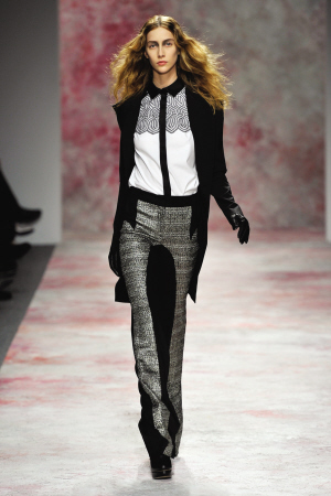 3.1 Phillip Lim / 勝在褲形,寬松的胯部與略微收攏的腳踝,九分褲,露出一小段腳踝,感覺更為時髦隨性,也更容易搭配今年秋冬的針織毛衣風(fēng)潮。