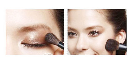 1. 用刷子沾少許粉餅刷整個(gè)眼瞼,然后蓋上一層棕色眼影。