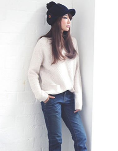 毛線帽也能詮釋帥氣灑脫的感覺,這款毛線帽稍微帶有一點(diǎn)貝雷帽的影子。頂部較圓潤一些,戴起來頭部有略微的膨脹感,不過帽檐的修飾立即有了巧妙的收縮效果,很顯臉小喲