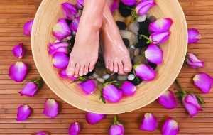 芳香治療師建議,在進(jìn)行泡足護(hù)理時(shí)可運(yùn)用香氛精油緩解壓力,在40度左右的熱水中溶入幾滴佛手柑或茶樹精油,這樣具有殺菌并軟化角質(zhì),刺激足部血液循環(huán),舒緩一整天下來的壓力;或加入少許檸檬汁和粗鹽,不僅可以殺菌,未完全溶解的顆粒通過按摩還可以幫助清除增生的角質(zhì)細(xì)胞。若加入各四滴佛手柑、鼠尾草及兩滴絲柏樹香薰油,便有去除腳臭的功效。至于迷迭香、薰衣草及杜松果各三滴的配搭,則有助雙足消除疲倦去水腫。