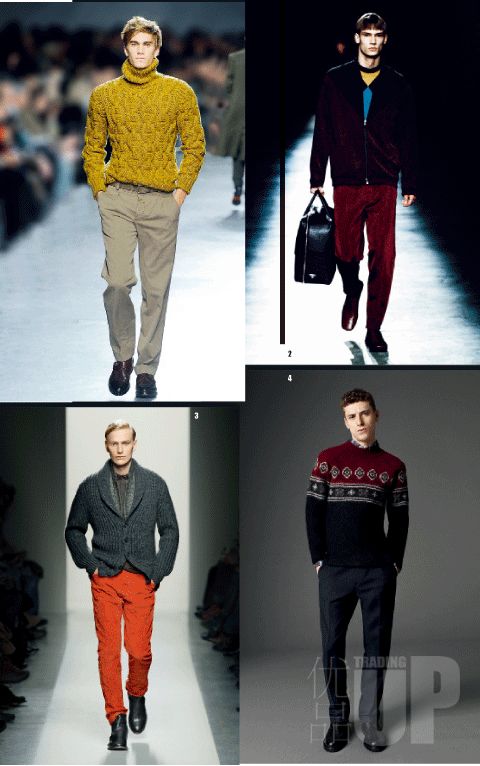 1.黃色針織毛衣HERMES 2.醬紫色拼接毛衣PRADA 3.深灰色翻駁領(lǐng)毛衣BOTTEGA VENETA 4.黑色花紋毛衣 ALFRED DUNHILL