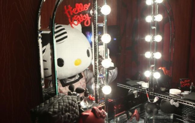 該套房的另一大特色,就是擺在房間梳妝臺上的那些超萌的高檔彩妝產(chǎn)品及用具。Hello Kitty加美妝,有多少女孩能hold住呢