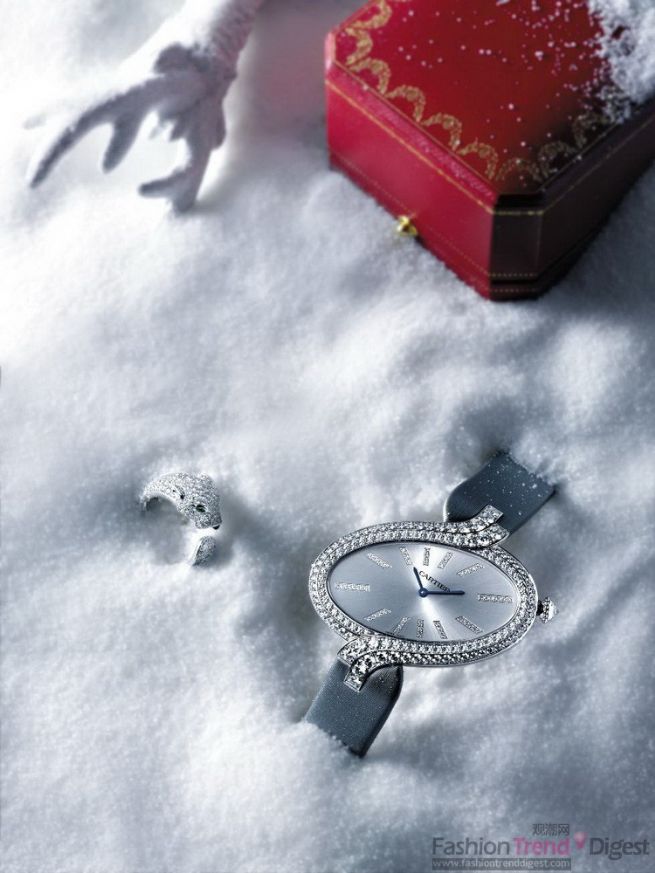 華美的女士配飾在雪色的映襯下更顯高貴優(yōu)雅,金銅色女士手袋,選用柔軟的絨面小牛皮與獨(dú)特的水蛇皮,淋漓盡致地展現(xiàn)出時(shí)尚魅力。崇尚簡約自然的Marcello de Cartier手袋則以大氣的設(shè)計(jì)與細(xì)膩的材質(zhì)為柔美的女性氣質(zhì)增添干練元素。穿梭林間的獵豹以靈動姿態(tài)伏于女士書寫系列之上,不經(jīng)意間透露的神秘氣息,延續(xù)著夢幻般的無限魔力