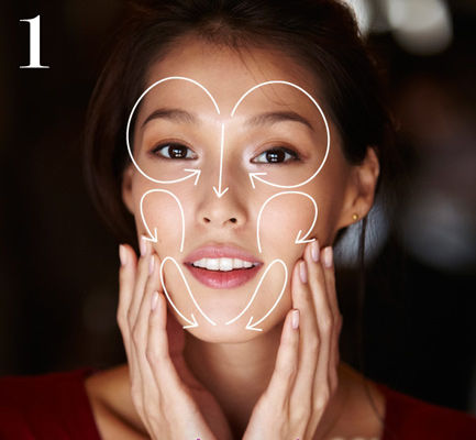 取小顆珍珠量的乳霜,在手心勻開(kāi)后,以雙手指腹沾取,從下巴開(kāi)始向上劃圈涂抹,直到質(zhì)地完全被肌膚吸收