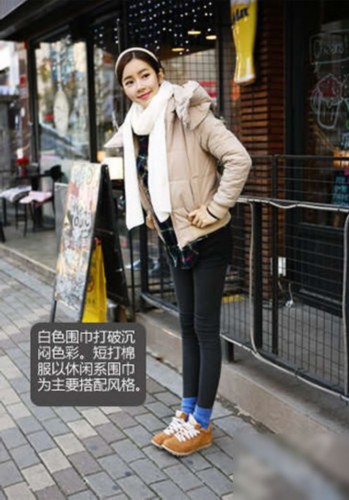 白圍巾+米色羽絨服=文藝小妹萬人迷