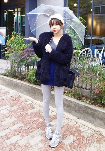 ????2.羊羔毛外套看起來更可愛哦? ????韓國街拍中羊羔毛外套在冬季非常高街。憑借柔軟手感,輕薄質(zhì)感贏得不少年輕MM的喜愛。即使厚厚的外套看起來好像更加襯托的你的嬌小與可愛。這里更建議深色為主哦。盡量減輕膨脹感哦