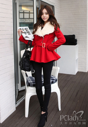 ????4.翻毛呢子外套剪裁很重要 ????喜歡粗呢材質(zhì)的MM,在大衣與保暖問題上常常糾結(jié)很久。其實可以兩者兼顧。如今呢子大衣里面的翻毛內(nèi)膽不僅元素上起到裝飾作用,又提高保暖作用。腰帶收腰版型都是在突顯你的好身材呢