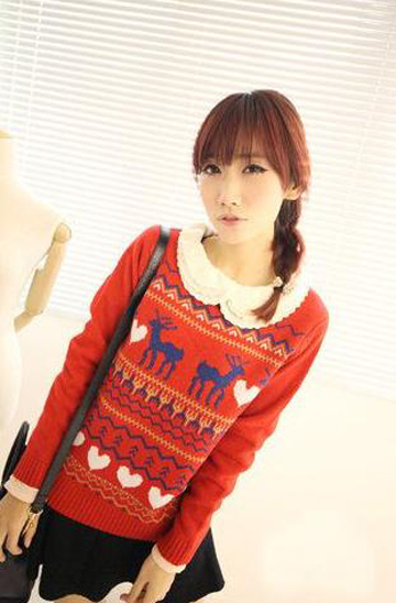 很有節(jié)日氛圍的一款毛衣,糖果色調(diào)配合小麋鹿的點綴,讓你提早感受到新年的浪漫,搭配半身短裙很顯乖巧呢