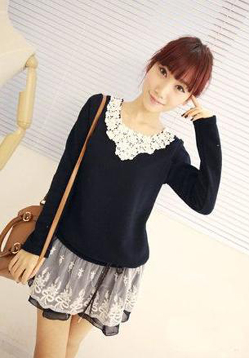 洋氣的藏藍色,領間蕾絲花邊外加美麗的雪紡擺,就算是一件普通的內(nèi)搭裙已經(jīng)很美妙。配合內(nèi)襯舒服的一層厚絨,單穿就甜美溫度兩不誤