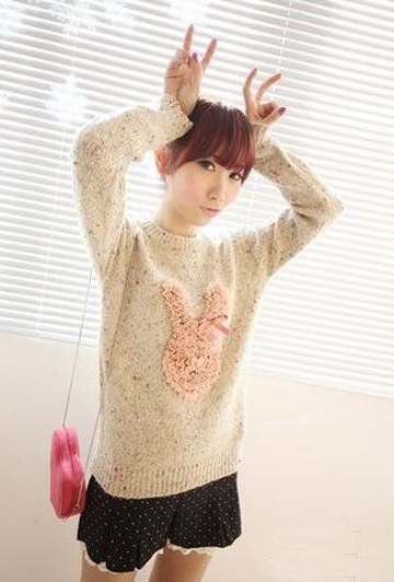 超級好看的一款內(nèi)搭毛衣,可愛的植絨兔子LOGO配合整體的絨絨手感,搭配迷你裙和毛毛圍巾都很贊