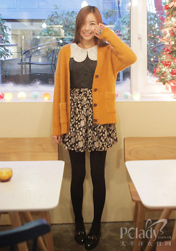 今年純色的粗棒針毛衫非常流行,運(yùn)用一件姜黃色的粗棒針毛衫搭配碎花傘裙,隨性的風(fēng)格打造“不費(fèi)力造型”的美感,用姜黃色與黑白進(jìn)行撞色搭配,既有視覺(jué)沖擊力又不失潮人風(fēng)范,非常值得推薦,也很適合身材苗條的女生