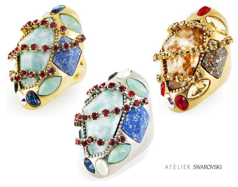 施華洛世奇(Swarovski)旗下工作室Atelier Swarovski與美國(guó)最火爆的時(shí)裝劇《Gossip Girl》的幕后造型師Eric Daman合作,推出了Atelier Swarovski by Eric Daman 2012春夏系列。閃亮的施華洛世奇水晶與原石相配,營(yíng)造出復(fù)古而又華麗的宮廷風(fēng)情