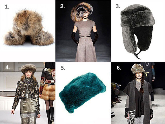 ??? 1. MONCLER Fur aviator hat 棕色毛皮飛行帽 2. The Row Fur hat 棕灰毛皮帽 3. Forever21 Faux fur trapper hat 淤灰毛皮飛行帽 4. Oscar de la Renta Fur round hat 灰色毛皮圓帽 5. TOPSHOP Teal luxe fur cossack 孔雀綠哥薩克帽 6. Band of Outsiders Fur hat 棕色毛皮帽