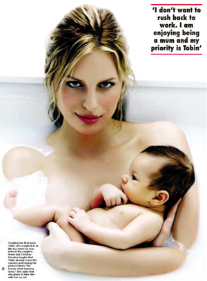 ????而時(shí)尚界對(duì)于這些辣媽更是寬容鼓勵(lì)甚至還帶著點(diǎn)推崇,可不是,無論是Miranda Kerr還是Adriana Lima,生完孩子一回伸展臺(tái),老東家要不就給個(gè)第一位出場(chǎng)要不就給穿個(gè)超級(jí)貴的鉆石Bra。如果說你以為是老東家給個(gè)情面的話,那就來看看《Elle》美國版2011年10月號(hào)封面吧!登場(chǎng)的4位名模Adriana Lima 、Miranda Kerr、Doutzen Kroes和Chanel Iman中,前三位都已經(jīng)是孩子他媽了。