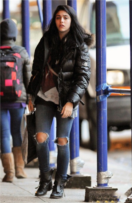 時尚解析:破洞牛仔褲搭配頹廢感的靴子,顯得更加不羈,大圖案T恤也十分個性,但是追求時尚的時候也還是要稍微注意些保暖,這時羽絨服就必不可少了