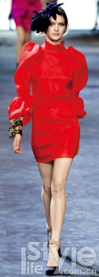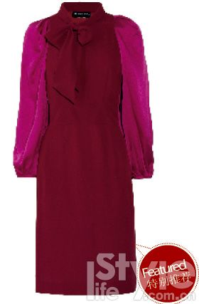 不用多說(shuō),拼色已經(jīng)是強(qiáng)調(diào)數(shù)次的流行主題。深沉的紅色不會(huì)過(guò)于夸張,而拼接的桃紅色袖子又不讓你流于平淡!