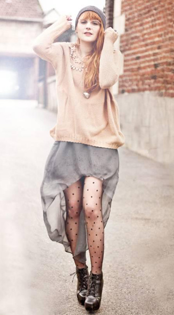 波點和黑絲都是絲襪元素里的寵兒,淺色黑絲與圓點的結(jié)合宛如動畫片人物一樣可愛