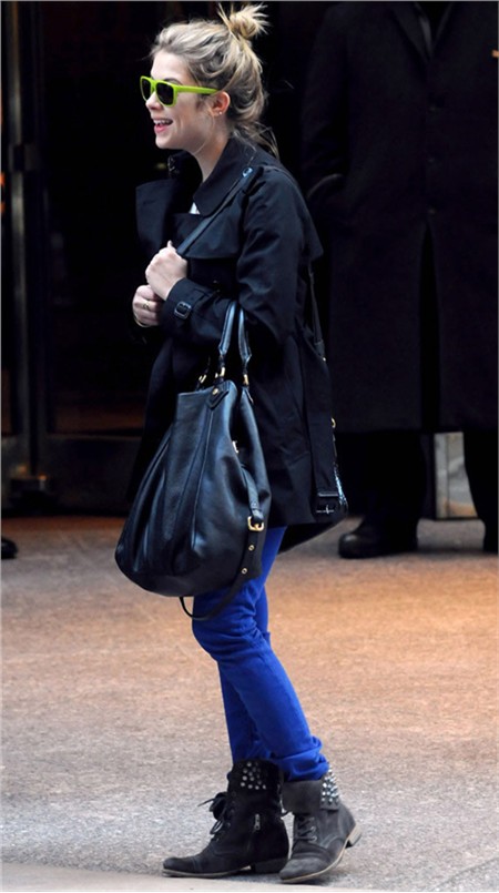 時(shí)尚解析:藍(lán)色的小腳褲使得腿部的線條看起來更加的纖細(xì),加上寬大的上衣,看起來顯得更加的纖細(xì)
