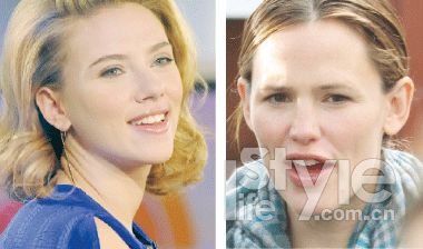 斯嘉麗(左)的皮膚水潤飽滿,充滿活力;而詹妮弗·加納(右)看起來卻蒼白憔悴,都是皮膚干燥惹的禍。