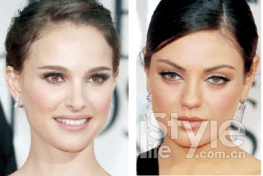 米拉·庫妮斯(右)顯老不僅僅是因為黑眼圈,更是由于膚色不勻,但娜塔莉·波特曼(左)身為辣媽依然膚色光彩照人。
