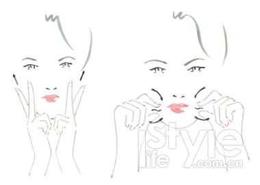 2.用食指和大拇指按摩嘴角和法令紋的位置