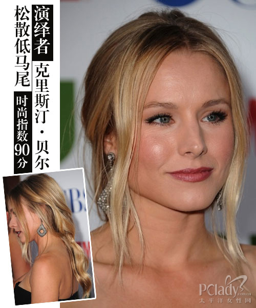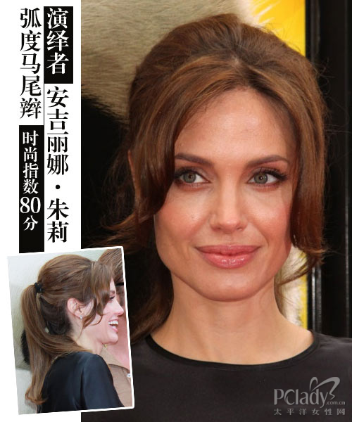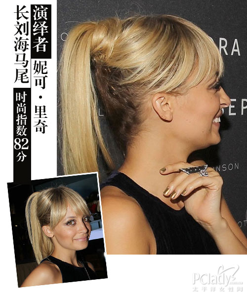 演繹心機(jī):辣媽妮可這款馬尾很俏皮,雖然大減齡,但是一點(diǎn)也不簡單哦。除了長劉海搭配馬尾辮,還要預(yù)先從頭頂分出一部分頭發(fā)纏繞發(fā)尾,此時(shí)手法一定要穩(wěn),以免手一抖就弄亂了整個(gè)發(fā)型,胳膊容易累的MM可要多加練習(xí)了,最后遮住橡皮筋,這樣看起來更c(diǎn)hic