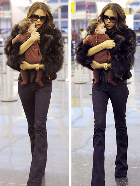這樣的情形總是讓人倍感溫暖,辣媽維多利亞一身勁酷,修長的美腿惹人眼,搭配著皮草外套真是風(fēng)姿卓越的嬌人兒。她緊緊懷抱著小哈珀像是抱著稀世珍寶一樣的呵護(hù)著,圍繞著,生怕小哈珀受一點(diǎn)傷害。愛女心切的維多利亞讓人看到了她溫情的母愛。小哈珀一身小精靈一樣的連身裝,頭上還有個(gè)同色系發(fā)卡,可愛到爆