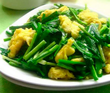 春天氣候冷暖不一,需要保養(yǎng)陽氣。而韭菜最宜人體陽氣,有天然“偉哥”之稱。韭菜含有揮發(fā)油、蛋白質(zhì)、脂肪和多種維生素等營養(yǎng)成分,有健胃、提神、強腎等功效。春韭為韭菜中的佼佼者,味道尤為鮮美。其根白如玉,葉綠似翠,清香馥郁。春韭吃法多樣,既可佐肉、蛋、蝦、墨魚等,又可做蒸包、水餃的餡料。炒綠豆芽或豆腐干時加些春韭,格外芳香可口