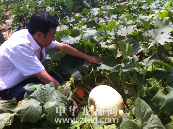 川匯區(qū)蔬菜研究所副所長康俊君蹲下身子撥開綠綠的葉子,指著已長成的太空南瓜(如圖二)說:“現(xiàn)在這個太空南瓜有十多斤重了,這些南瓜最大可長到幾十斤甚至百斤。”