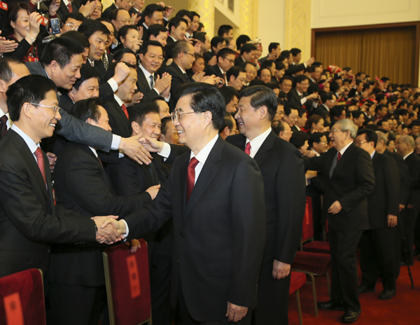 ????在熱烈的掌聲中,胡錦濤、習近平發(fā)表了重要講話?! ?/p>