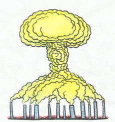 ??? 蘑菇云,戰(zhàn)爭(zhēng)和死亡的代名詞,人們說起它無不避若蛇蝎,然而可笑的是,人類對(duì)于空氣污染,全球變暖,這顆無形的原子彈卻是重視不足,任它漸漸發(fā)揮出威力。須知,戰(zhàn)爭(zhēng)只能毀滅一個(gè)國家或者民族,但是污染地球,導(dǎo)致的是就是全人類的滅亡。
