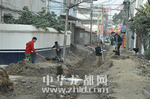 ????記者在新街支路的改造工程施工現(xiàn)場看到,該路段東西兩側各有一輛工程車正在作業(yè),道路的兩層灰土層已經鋪好,數(shù)十名施工人員正在開挖污水管道。