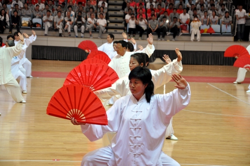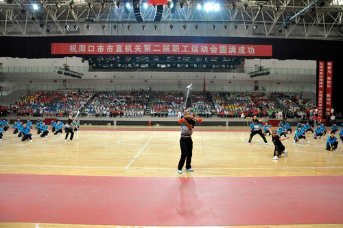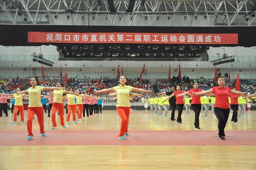 ????開幕式后,由周口市教育局、周口市公路局、周口市直機(jī)關(guān)事務(wù)管理局、周口市直幼兒園四個(gè)參賽單位共同表演的第九套廣播體操拉開了文體表演的序幕。周口師范學(xué)院推薦的青春健美舞,周口太極協(xié)會(huì)的太極刀、太極劍、太極扇表演,周口市秧歌協(xié)會(huì)推薦的中老年健美舞和周口三通武校帶來的精彩武術(shù)表演等全民健身項(xiàng)目展演。